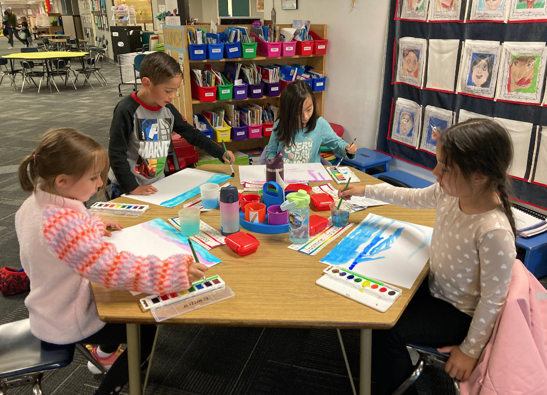 Photo: Students in Ms. Baker's class creating watercolor art.